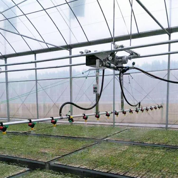 溫室自動噴灌機為普通型雙臂自走式噴灌機,噴灌的均勻度高,噴嘴的狀況可根據(jù)使用目的進行調整,除常規(guī)灌溉外還可進行施肥和試藥等多種作業(yè)工作。